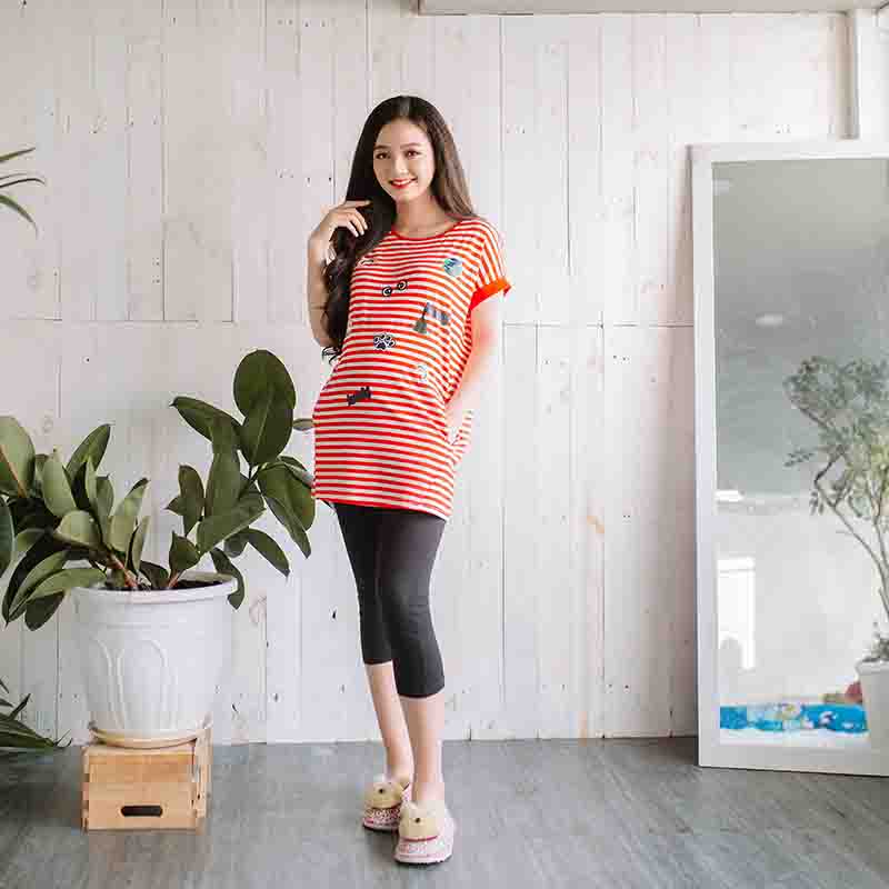 - Thiết kế dáng dài tay ngắn nên mẹ dễ dàng kết hợp quần legging, thích hợp cho mẹ bầu mặc đi làm, dạo phố