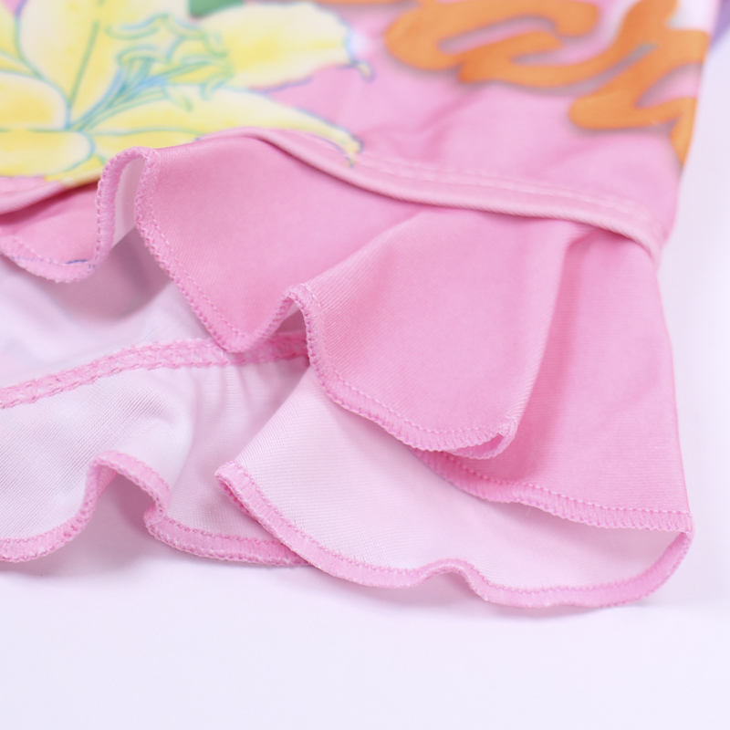 Áo bơi bé gái họa tiết trái tim nhỏ màu hồng xinh xắn.