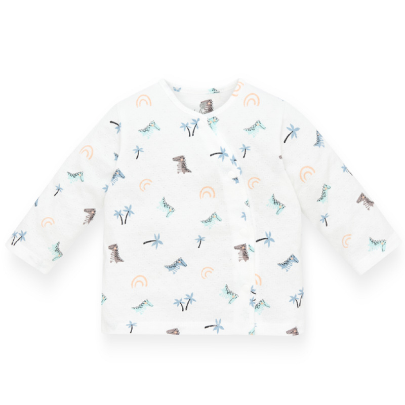 Áo cài lệch dài tay in hình khủng long Lullaby NH609P (trắng)
