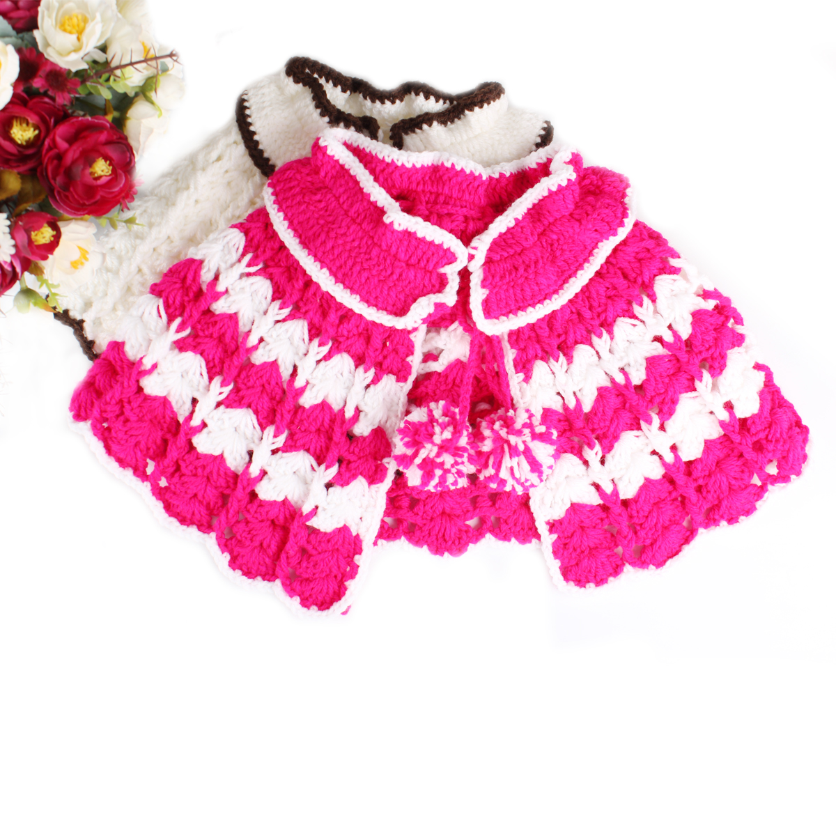 Áo choàng len handmade cho bé 060 màu hồng đậm