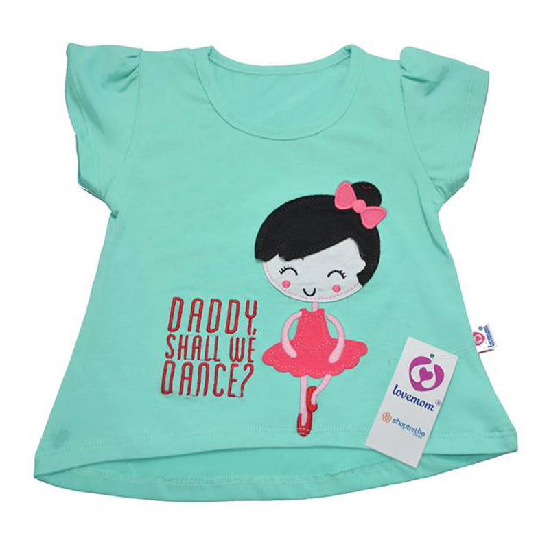 Điểm nổi bật của áo cộc bé gái Lovemom màu xanh (thêu hình cô gái)