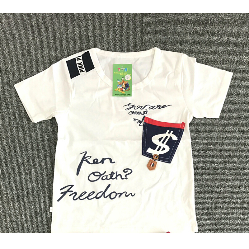 Mô tả Áo cộc bé trai TA in họa tiết $ (1-5T)