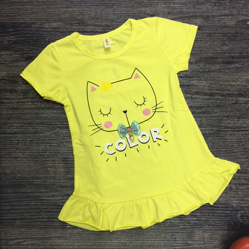 Mô tả Áo cộc tay bé gái in hình mèo đính nơ (3-8T)