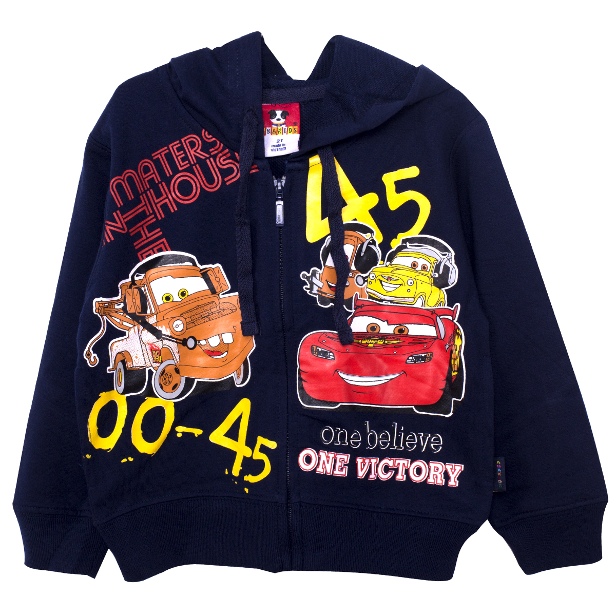 - Thiết kế khóa kéo, áo có mũ sành điệu, mặt trước có họa tiết xe đua ngộ nghĩnh, mang đến cho bé vẻ ngoài thật bụi bặm và cá tính.
