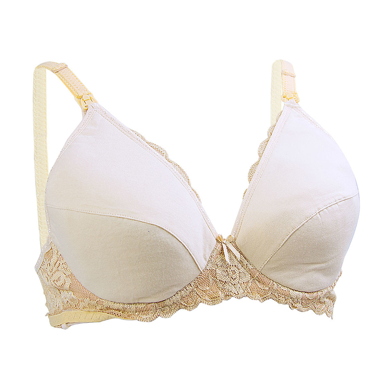 Áo lót cho con bú có gọng phối ren Emum (màu da) may từ vải sợi cotton tự nhiên nên hút ẩm và thoáng mát, mang lại cảm giác thoải mái cho mẹ. Áo có thiết kế với khóa cài, mẹ có thể dễ dàng kéo xuống cho bé bú mà lại kín đáo. Dáng áo mặc ôm bầu ngực, thoải mái và lịch sự ngay cả khi mặc đi ra ngoài.