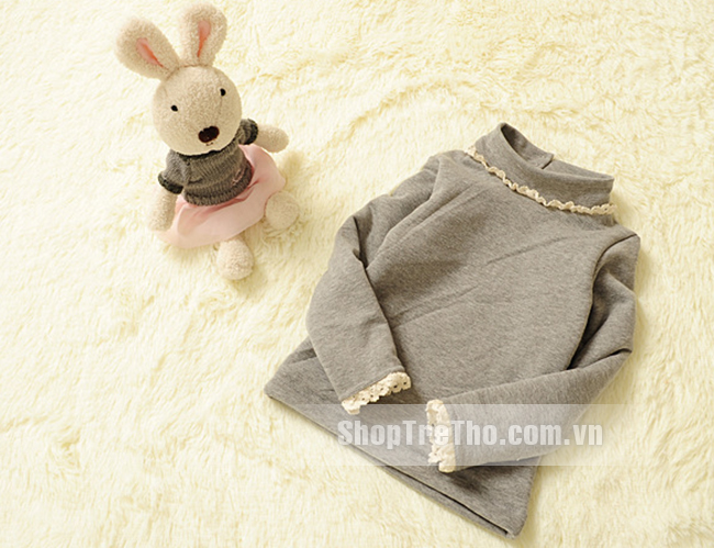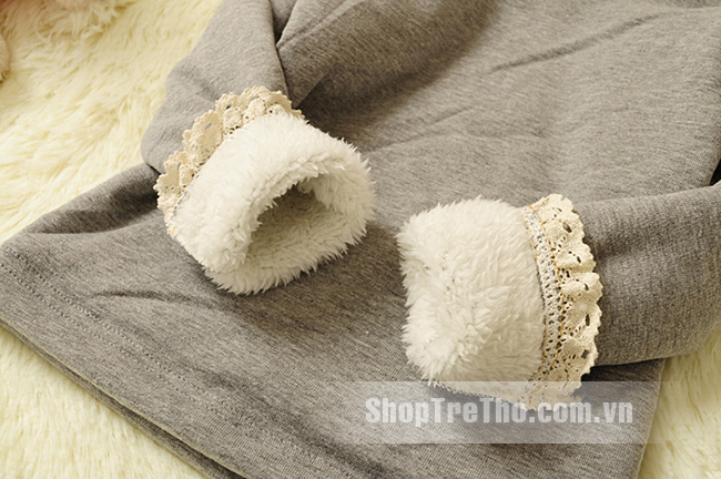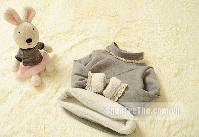 Áo nỉ bông màu ghi viền cổ trắngcho bé gái