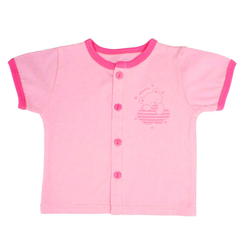 Áo tay ngắn thiết kế kiểu cúc giữa, giúp mẹ dễ dàng hơn khi mặc áo cho bé