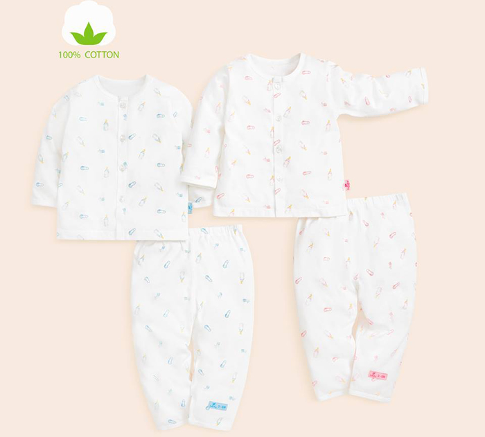 Nền vải trắng với những họa tiết hình bình sữa đem lại cảm giác dịu nhẹ, êm mịn như chính làn da bé.