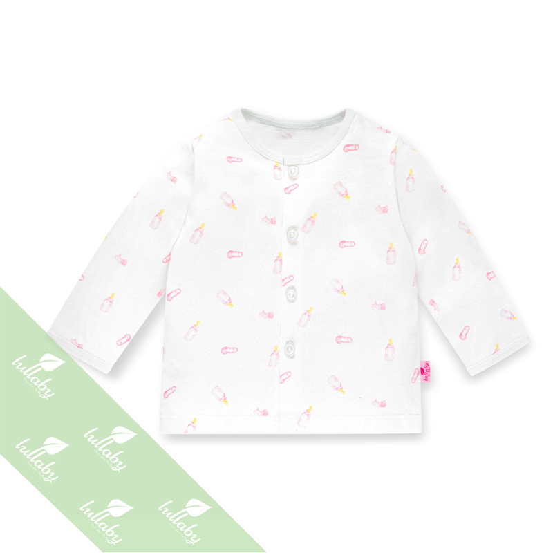 Áo dài tay sơ sinh Lullaby với họa tiết bình sữa màu hồng dành cho bé gái