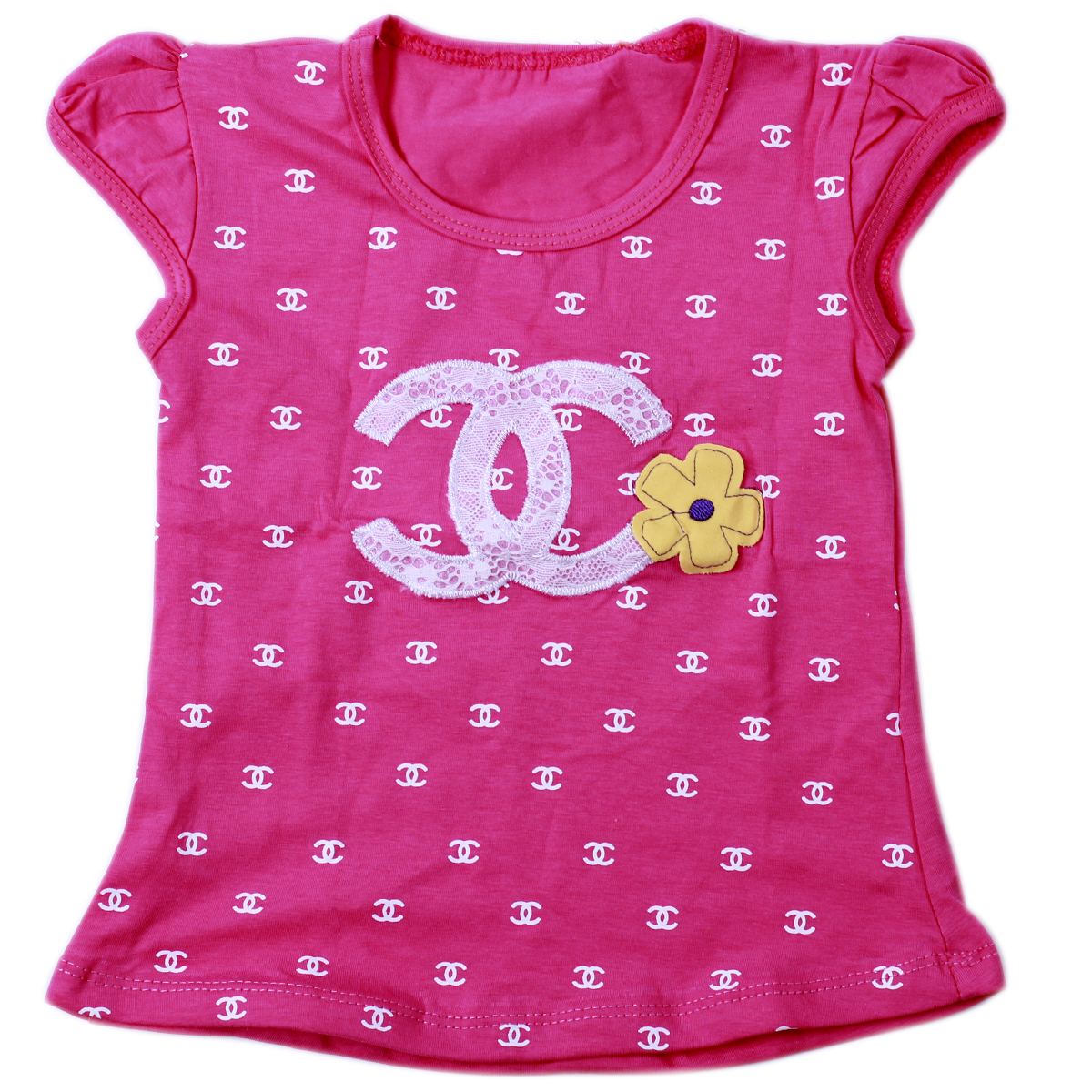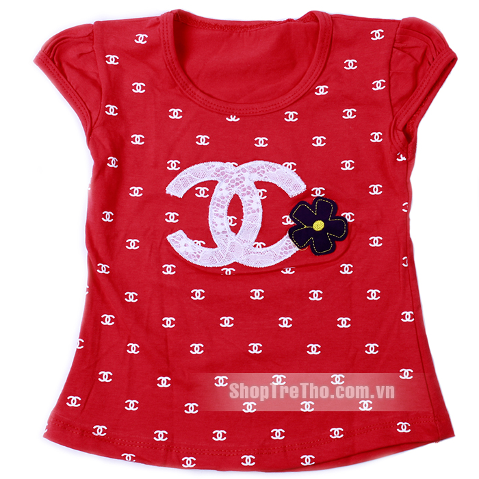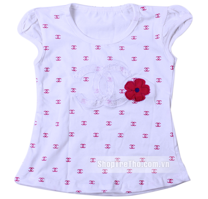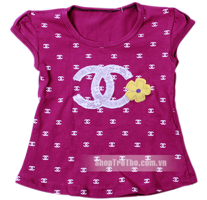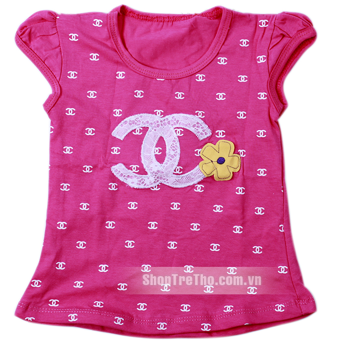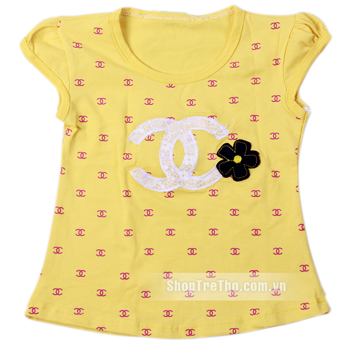 - Áo TA in Chanel cộc tay bé gái được thiết kế với nhiều màu sắc: hồng, vàng, trắng,…