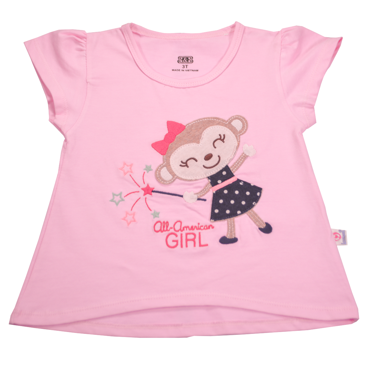 Mô tả Áo thun bé gái Lovemom màu hồng (thêu công chúa khỉ)