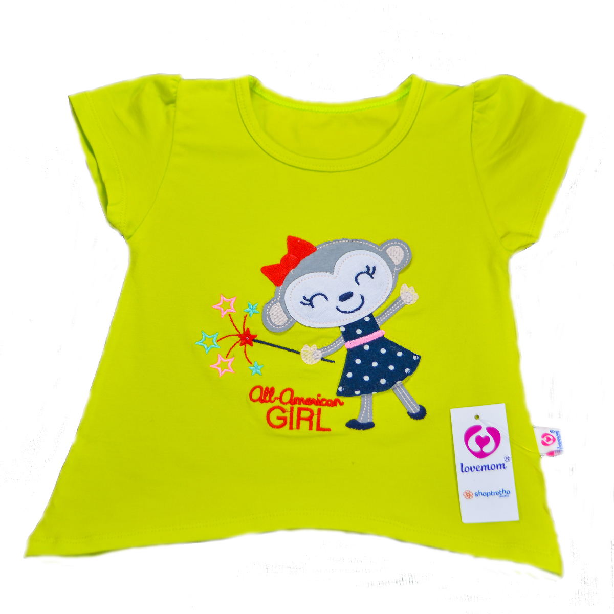 Điểm nổi bật của áo thun bé gái Lovemom màu xanh (thêu công chúa khỉ)