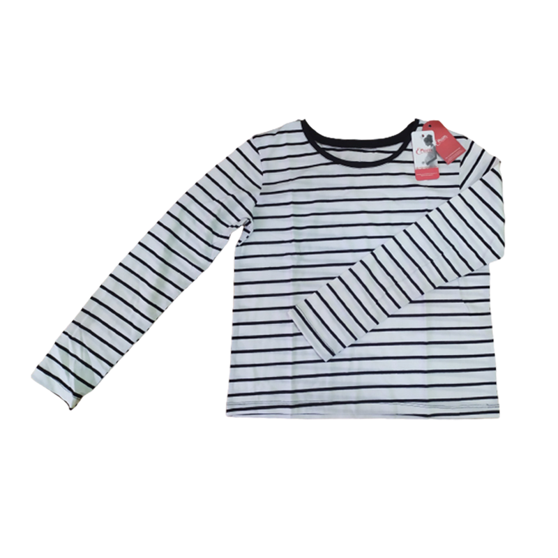 Áo thun bầu Emum dài tay với họa tiết kẻ sọc trắng đen