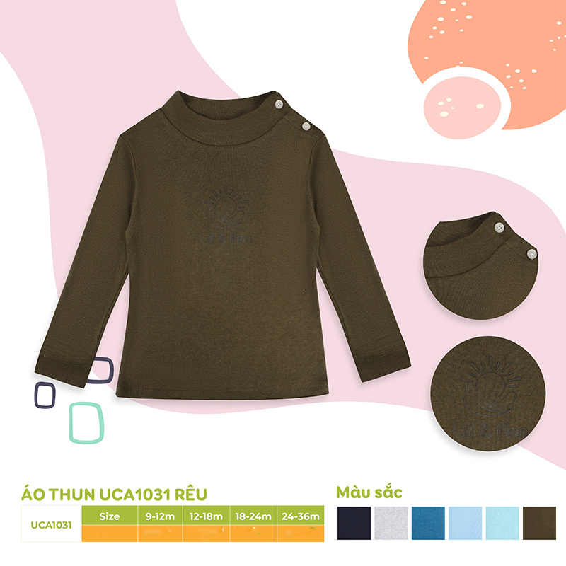 Áo thun cổ cao tay dài Uri&Finn UCA1031 (Rêu) với chất liệu 100% Cotton cực mềm mịn, an toàn cho làn da của bé. Áo cổ 3 phân chất thun mỏng, co dãn vừa giữ ấm cho bé trong những ngày thu đông se lạnh, vừa tạo cho bé vẻ ngoài sành điệu, đầy phong cách.