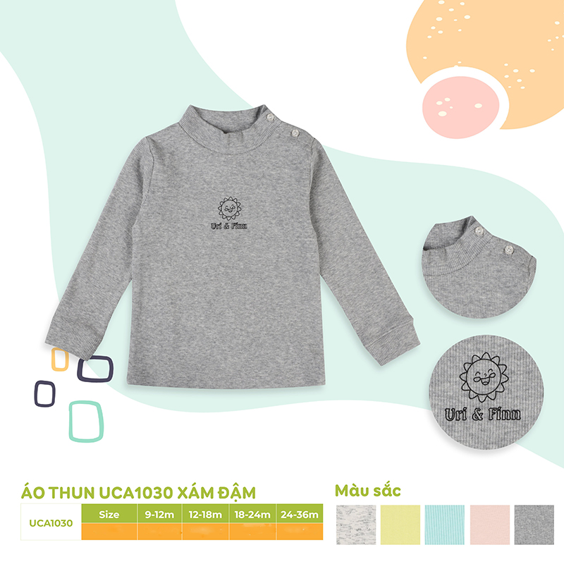 Áo thun tay dài Uri&Finn UCA1030 (Xám đậm) với chất liệu 100% Cotton cực mềm mịn, thấm hút mồ hôi tốt, áo cổ cao 3 phân, chất thun mỏng, co dãn giúp giữ ấm cho bé trong những ngày thu đông se lạnh.