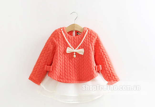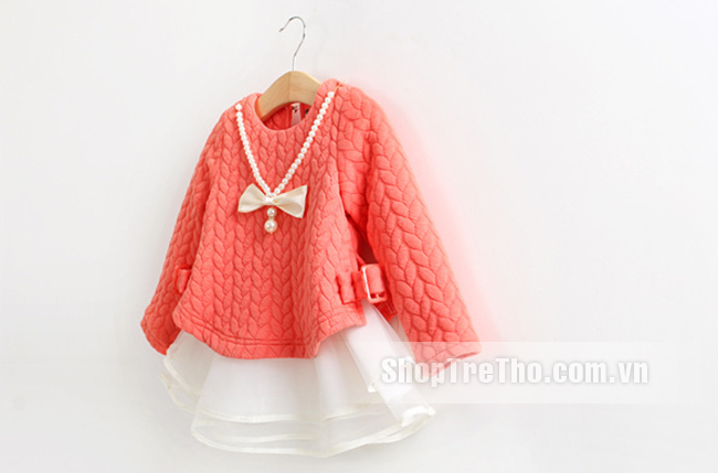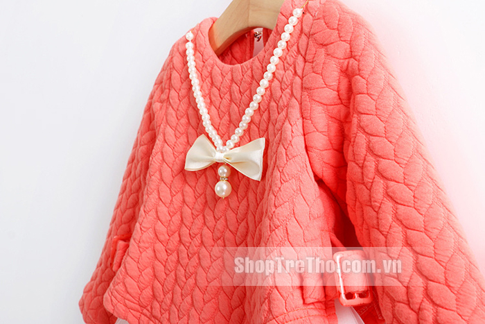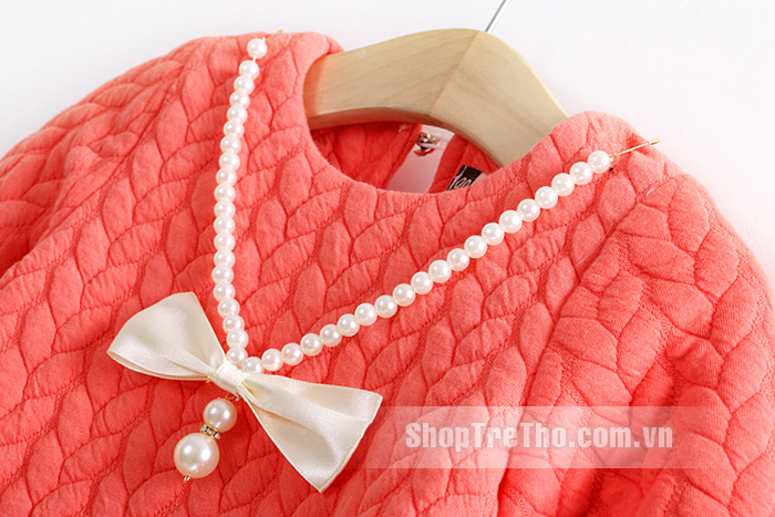Các mẹ hãy cùng tham khảo chiếc áo váy dạ đính vòng ngọc trắng, kiểu dáng điệu đà, không màu mè, không diêm dúa nhưng chắc chắn gái yêu nhà bạn sẽ không kém phần điệu đà và nữ tính đâu. Các bé sẽ vô cùng thích thú khi được mẹ mua cho chiếc váy này đấy.