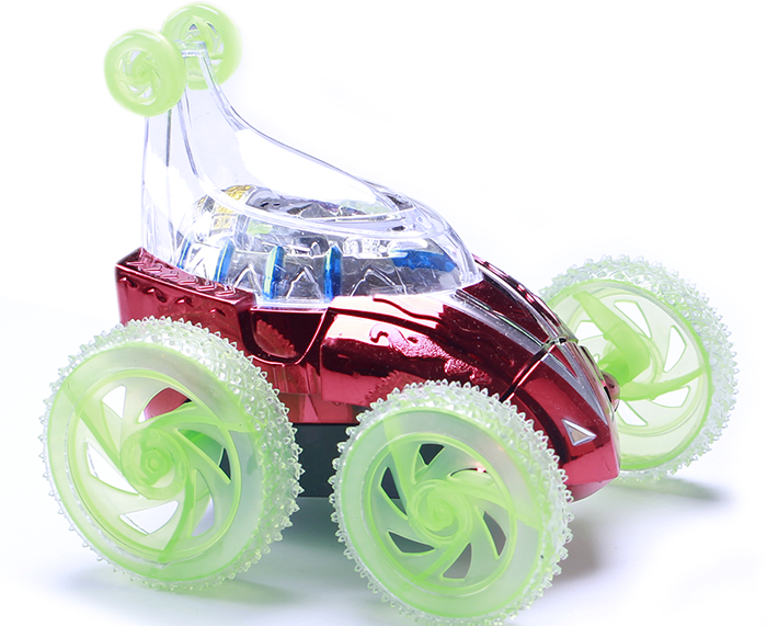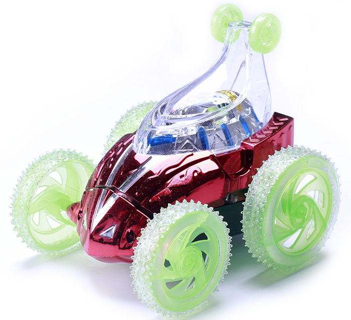 Ô tô điều khiển lộn 2825 với bánh sáng, lộn nhào, lộn 360 độ, vượt dốc, vượt chướng ngại vật đi trên mọi địa hình. Có nhạc, có đèn sáng ở khắp 4 bánh xe và trên toàn thân xe. Sản phẩm sử dụng pin AA.