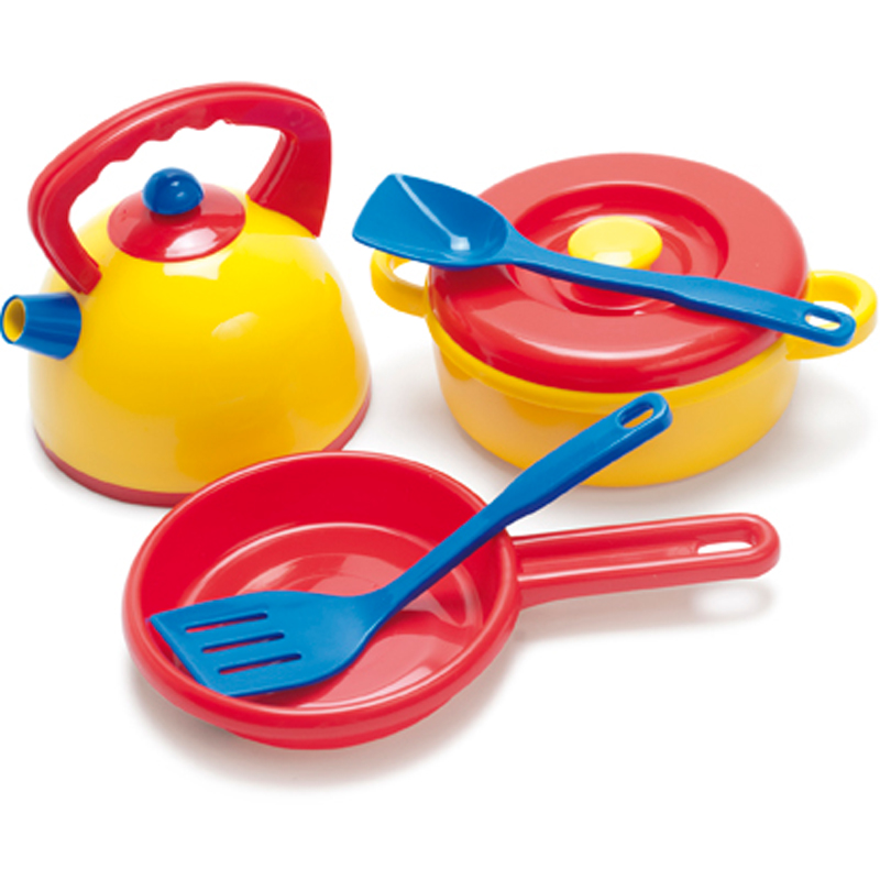 Bộ sản phẩm gồm các nồi, ấm, chảo để bé có thể tập nấu ăn như người lớn. Bé có thể rủ thêm bạn chơi cùng để tăng khả năng giao tiếp và học cách chăm sóc bạn bè.