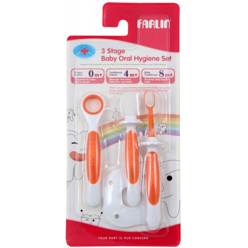 Với thiết kế chia làm 3 giai đoạn, giúp bé chải sạch từ những chiếc răng sữa đầu tiên cho đến khi mọc đủ răng sữa. Mỗi hộp gồm 1 dụng cụ vệ sinh lưỡi và 2 bàn chải, dụng cụ vệ sinh lưỡi BF-118 cho giai đoạn đầu tiên, bàn chải tập đánh răng cho giai đoạn 2, bàn chải tập đánh răng cho giai đoạn 3.