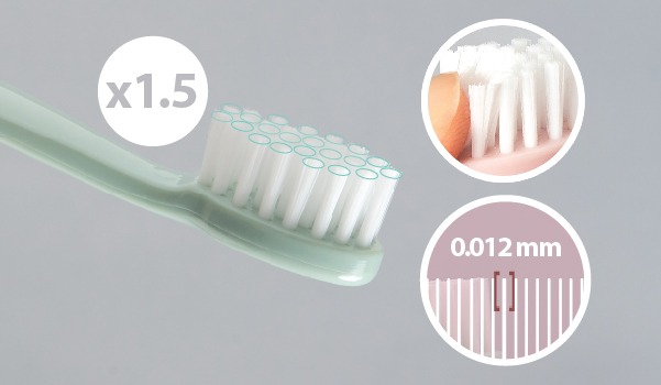- Mảnh hơn và mềm hơn 1.5 lần mà vẫn đảm bảo được độ đàn hồi giúp sợi lông len lỏi vào các kẽ răng mà không gây tổn thương hàm nướu của bé.