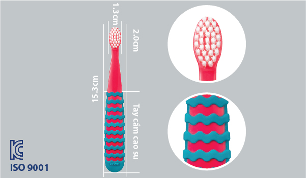 - Mảnh hơn và mềm hơn 1.5 lần mà vẫn đảm bảo được độ đàn hồi giúp sợi lông len lỏi vào các kẽ răng mà không gây tổn thương hàm nướu của bé.