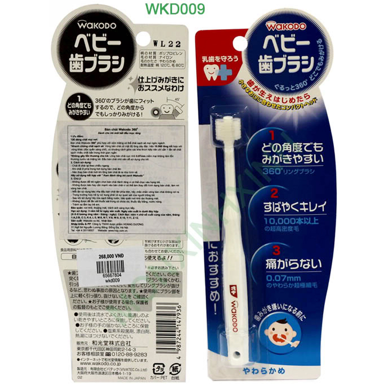Bàn chải Wakodo 360° phù hợp với vòm miệng có thể chải sạch sẽ mọi ngóc ngách