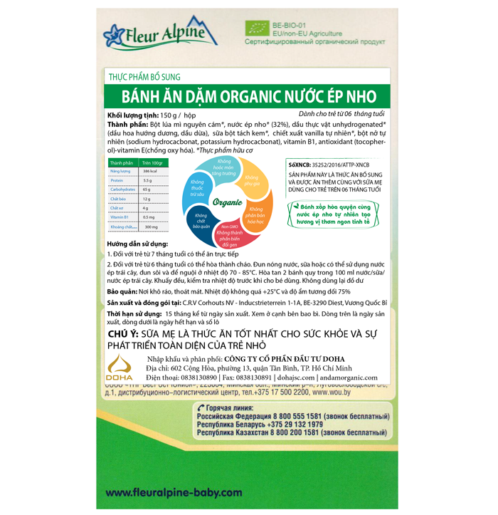 Bánh ăn dặm Fleur Alpine với vị ngọt từ nước ép nho tự nhiên