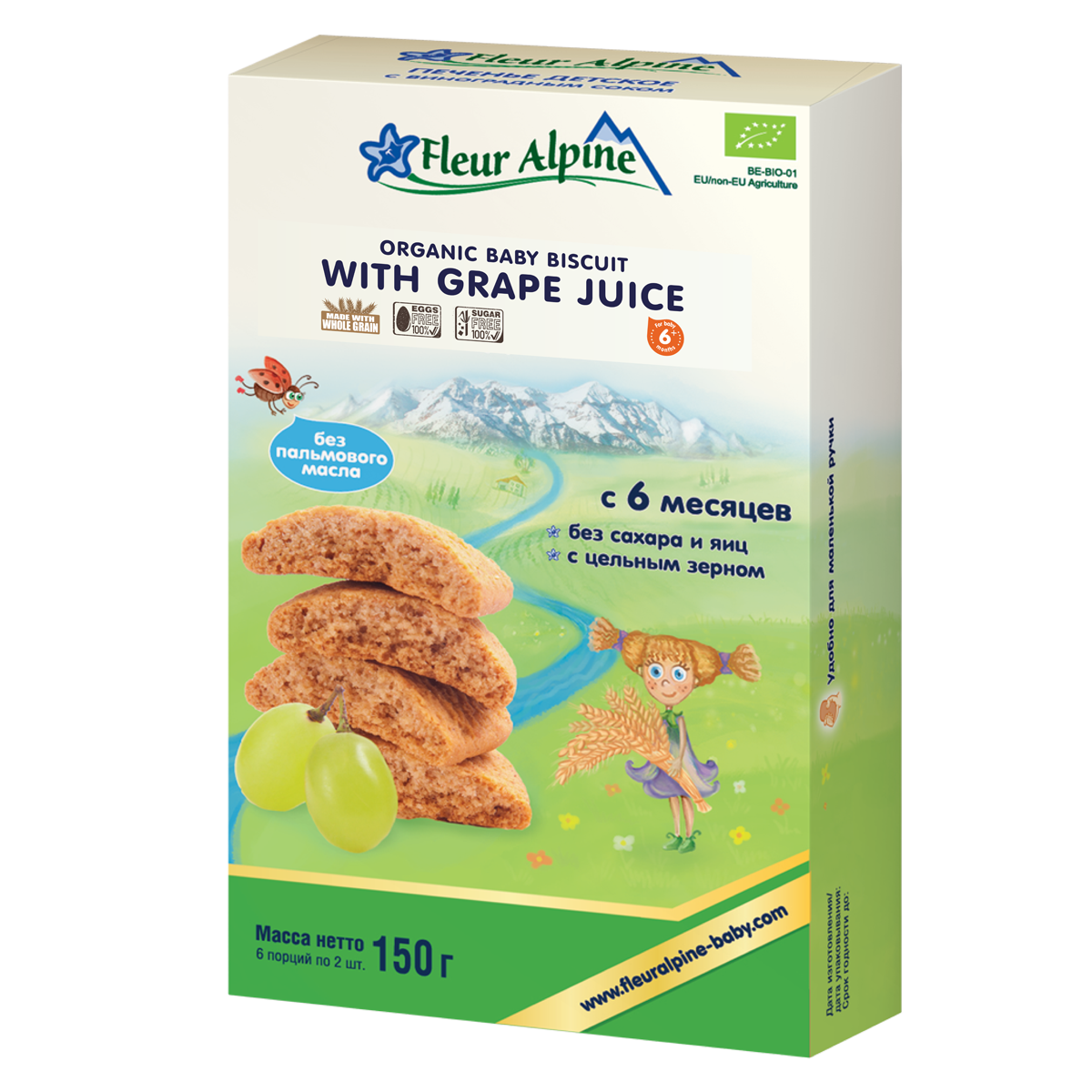 Bánh ăn dặm Organic Fleur Alpine - Nước ép nho là 1 trong những dòng thực phẩm cao cấp, đạt chuẩn Organic Châu Âu, cung cấp hàm lượng dinh dưỡng cao hơn các thực phẩm không có Organic khác. Bánh xốp, dễ tan với vị ngọt tự nhiên từ nước ép nho, dành cho bé từ 6 tháng trở lên.