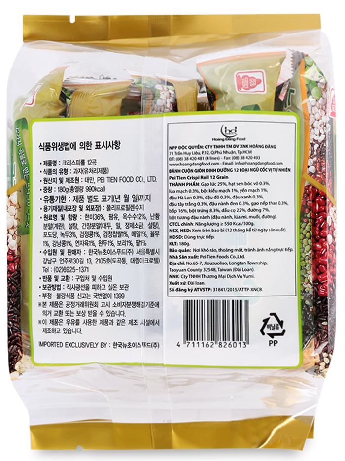 Bánh cuộn giòn dinh dưỡng Peitien 12 loại ngũ cốc vị tự nhiên được sản xuất trên quy trình công nghệ hiện đại, sản phẩm chất lượng cao đảm bảo an toàn vệ sinh thực phẩm, không hóa chất, không chất bảo quản an toàn cho sức khỏe người tiêu dùng.