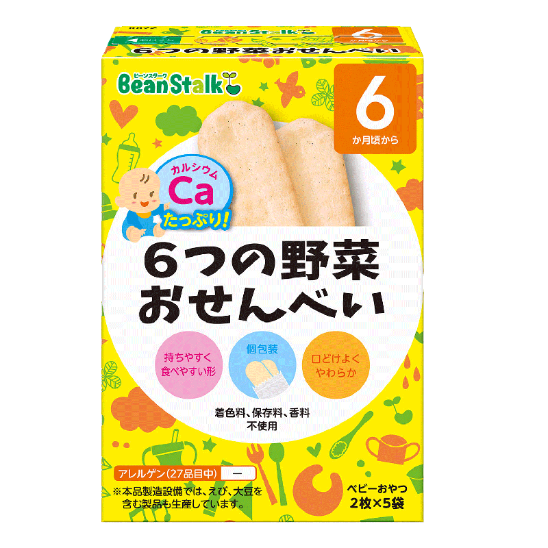- Bánh gạo ăn dặm BeanStalk được làm từ 6 loại rau củ đa dạng, hỗ trợ bổ sung dinh dưỡng thiếu hụt hàng ngày như năng lượng, canxi, protein, chất béo… phù hợp giai đoạn trẻ ăn dặm hệ tiêu hóa non nớt của trẻ.