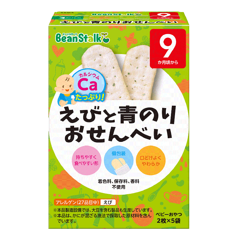 - Bánh gạo ăn dặm BeanStalk được làm từ tôm và tảo xanh, hỗ trợ bổ sung dinh dưỡng thiếu hụt hàng ngày như năng lượng, canxi, protein, chất béo… phù hợp giai đoạn trẻ ăn dặm hệ tiêu hóa non nớt của trẻ.