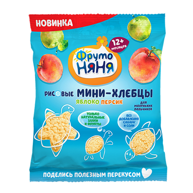 Bánh gạo ăn dặm vị táo, đào Fruto Nyanya cao cấp của Nga, dành cho bé từ 12 tháng tuổi được làm từ bột gạo, nước táo và đào nghiền cô đặc, không có chất tạo màu, không thêm đường để đảm bảo an toàn cho trẻ. Thông qua quá trình nhai bánh sẽ giúp bé kích thích cơ hàm, phát triển mọc răng tốt, kích thích tuyến nước bọt giúp hệ tiêu hóa hoạt động tốt hơn.