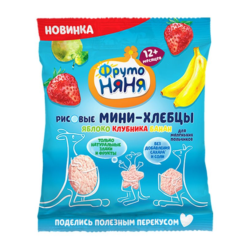 Thành phần: Gạo, nước táo cô đặc, nước dâu tây cô đặc, chuối nghiền, bột yến mạch, prebiotic-inulin.