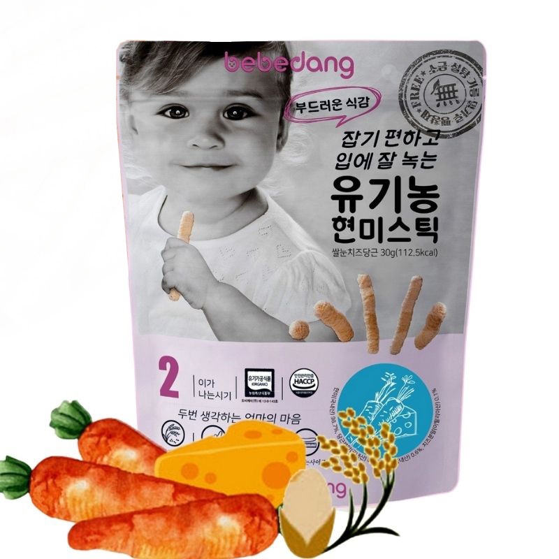 Bánh gạo lứt hữu cơ Bebedang vị cà rốt, phô mai bổ sung dinh dưỡng hiệu quả cho bé