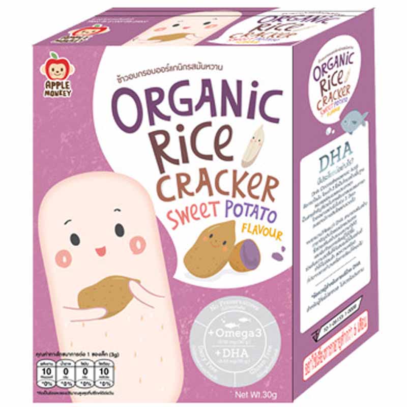 Bánh gạo organic vị khoai lang bổ sung Omega 3 và DHA giúp bé tập nhai, nuốt và phát triển răng, bổ sung Omega 3 và DHA để Bé thông minh hơn.