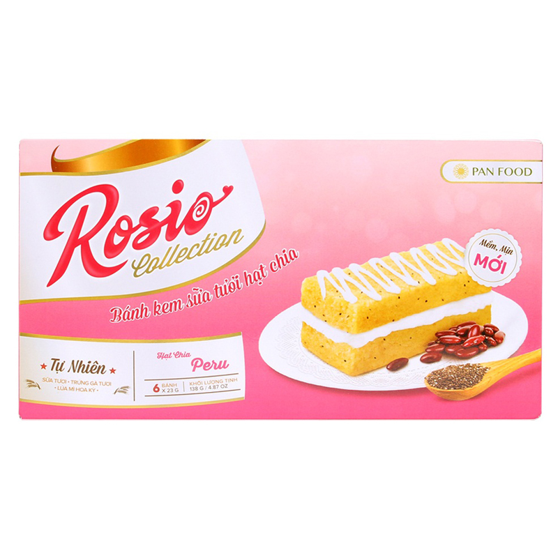 Bánh kem sữa tươi Rosio - Hạt Chia Peru (138gr) được làm từ 100% sữa tươi nguyên chất kết hợp hạt chia Peru chứa nhiều Canxi, chất xơ, Omega 3, Omega 6,... có tác dụng bảo vệ tim mạch, tốt cho tiêu hóa, làm đẹp da và giảm cân. Sản phẩm giúp mang đến bữa ăn nhẹ giàu năng lượng và dưỡng chất cho tất cả các thành viên trong gia đình.