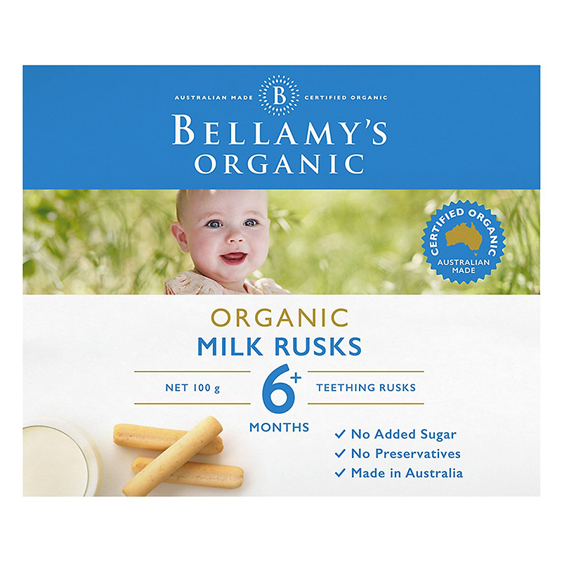 Bánh ngậm dinh dưỡng cho bé mọc răng Bellamy's Organic 100g (6m+) được nướng chậm để tạo độ cứng lý tưởng cho bé yêu của bạn gặm trong quá trình mọc răng. Bánh với thiết kế để bé có thể cắn mạnh mà không bị nứt hoặc vỡ vụn, đây là một sự thay thế tuyệt vời cho vòng mọc răng vì bánh ngậm được làm ra với các thành phần hữu cơ tự nhiên từ sữa, lúa mì và không bổ sung thêm đường.