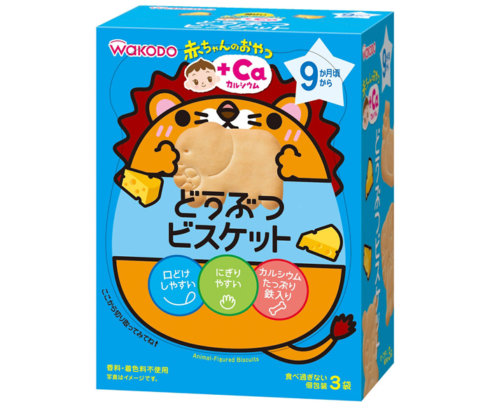 Bánh quy Wakodo hình thú dành cho trẻ từ 9 tháng tuổi trở lên.