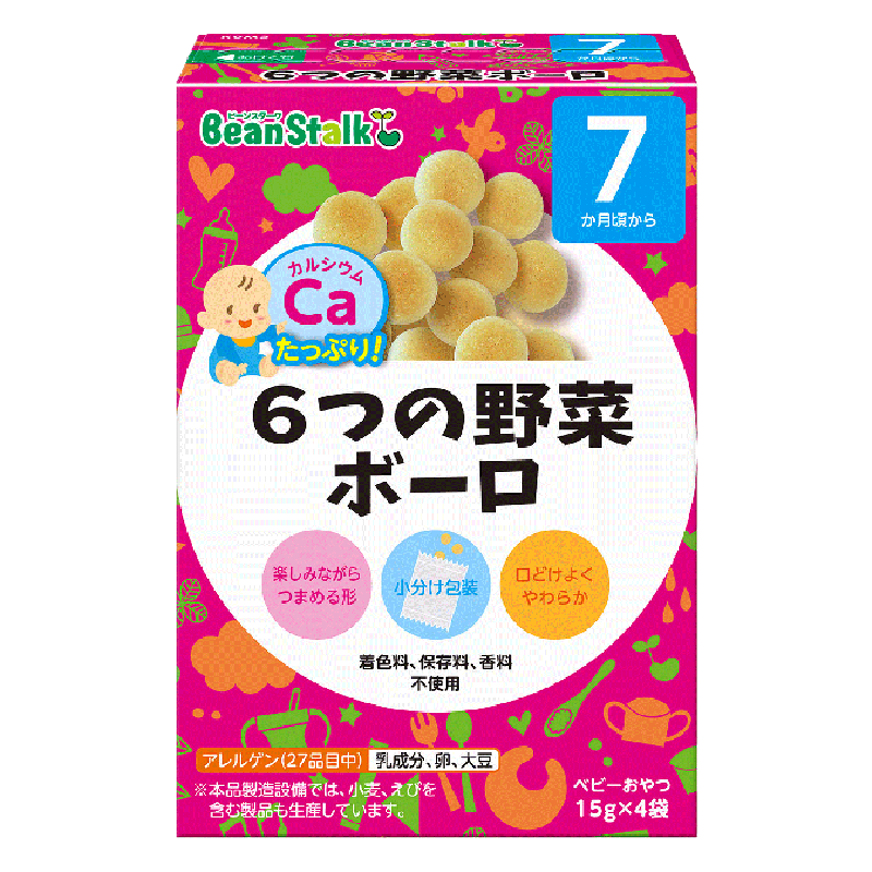 - Bánh gạo ăn dặm BeanStalk được làm từ 6 loại rau củ đa dạng, hỗ trợ bổ sung dinh dưỡng thiếu hụt hàng ngày như năng lượng, canxi, protein, chất béo… phù hợp giai đoạn trẻ ăn dặm hệ tiêu hóa non nớt của trẻ.