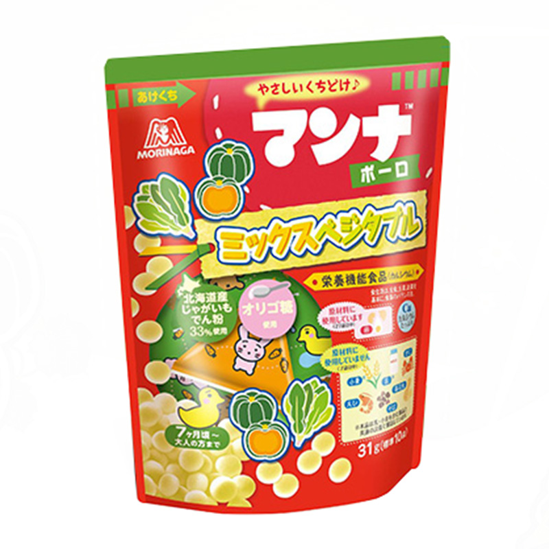 Bánh trứng Manna Bolo rau củ tự hào là bánh ăn dặm thế hệ thứ 3 đến từ Morinaga dành cho cả gia đình, từ trẻ nhỏ đến ông bà.