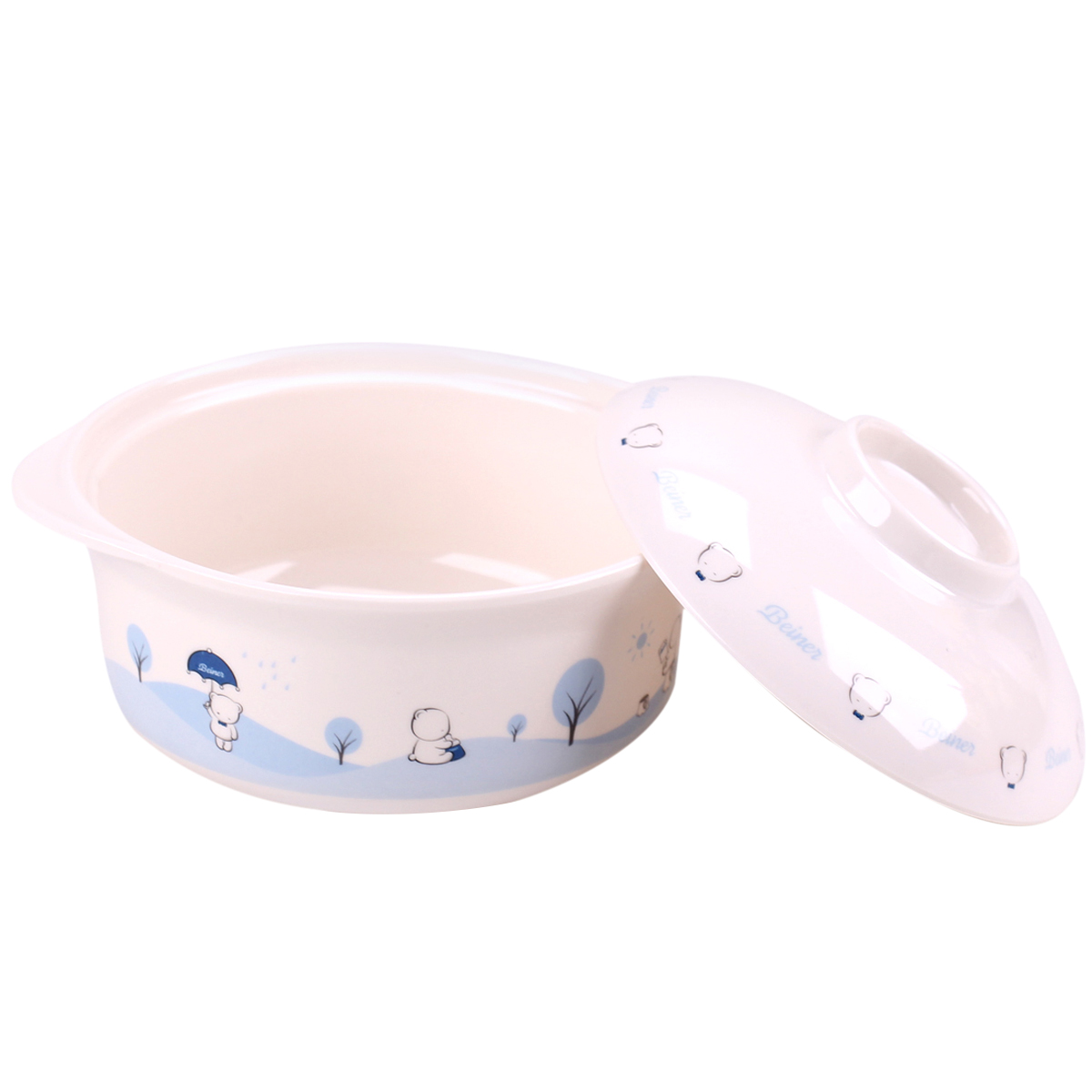 Bé từ 6 tháng tuổi trở lên đã có thể tập dần với việc dùng bộ đồ ăn. Để bé dễ dàng và hứng thú hơn, bố mẹ hãy chọn cho bé chiếc bát ăn có nắp đậy Beiner 6495 cho em bé. Thiết kế miệng bát rộng đáng yêu giúp bé dễ cầm nắm, hạn chế việc đồ ăn rơi vãi ra ngoài. Chất liệu nhựa phíp cao cấp an toàn cho sức khỏe trẻ em. Một điểm cộng cho bát Beiner là màu sắc tươi sáng, bắt mắt, họa tiết trang trí đáng yêu, cho bé thêm hứng thú khi tập sử dụng.