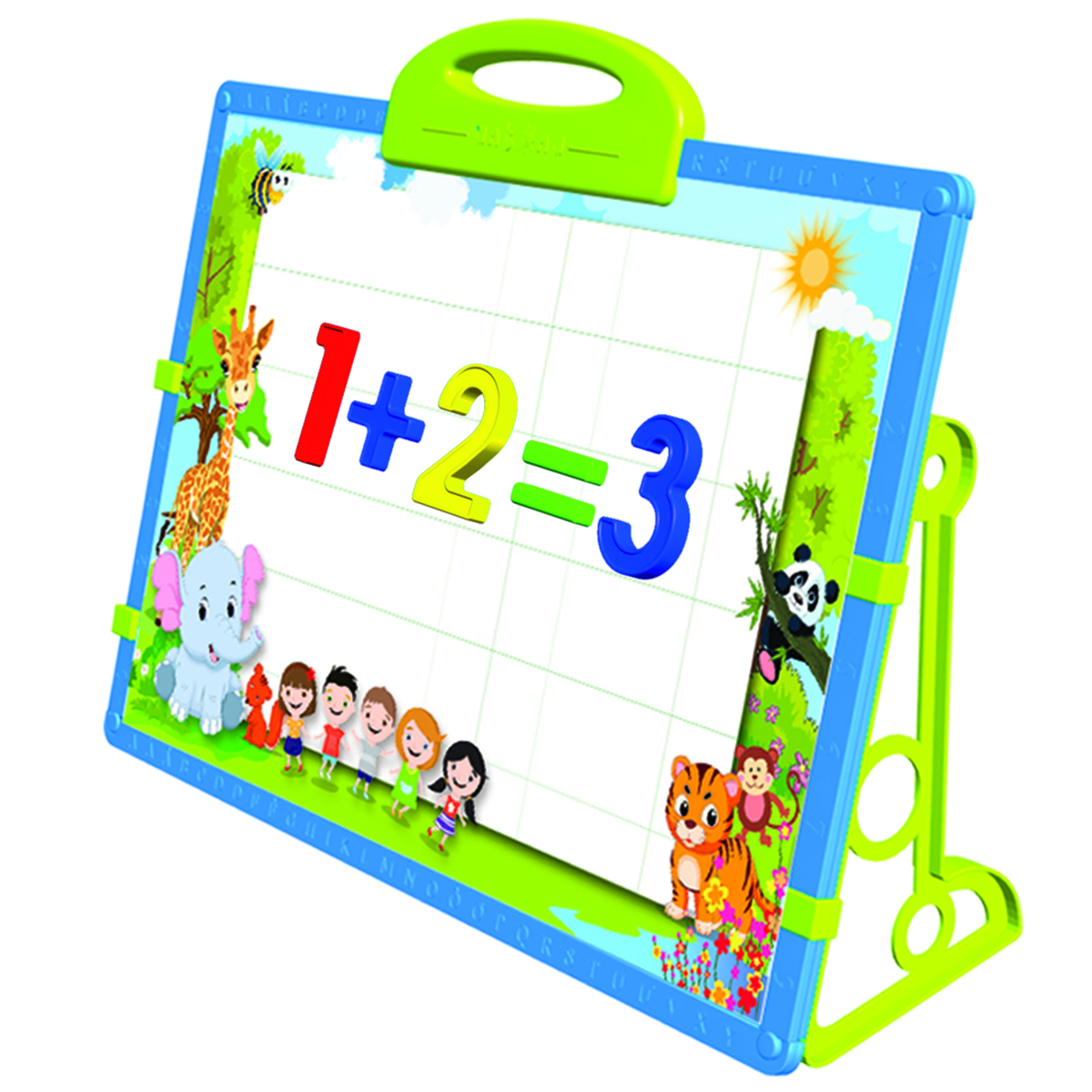 Sản phẩm là một bảng từ nam châm với 10 chữ số, 5 dấu phép tính, 12 miếng ghép trí uẩn, 2 chân đứng và 1 quyển sách với 3 cấp độ khác nhau từ dễ đến khó để bé làm quen và học tập một cách dễ dàng. Bé sẽ bắt đầu học và chơi bằng việc xếp các chữ số, thanh dấu và tập làm phép tính trên bảng nam châm. Với 1 quyển sách hướng dẫn có 3 cấp độ khác nhau từ dễ đến khó, bé có thể vừa học vừa chơi, tiếp thu tất cả những kiến thức và kỹ năng cơ bản cần thiết nhất trước khi tới trường.