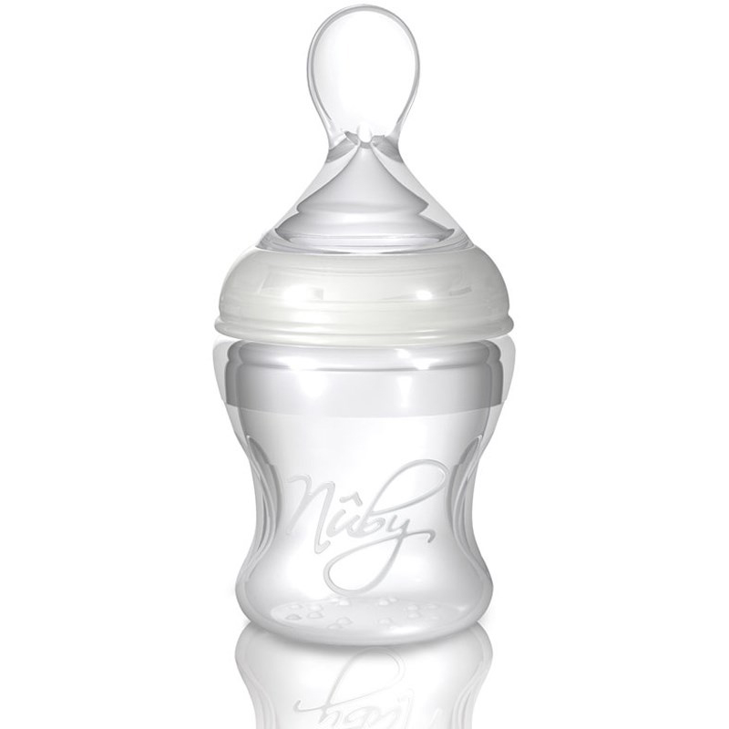 Bình thìa nuby - Đầu thìa (muỗng) và thân bình làm bằng chất liệu silicone mềm mại an toàn cho răng và nướu của bé, giúp mẹ cho bé ăn một cách dễ dàng hơn. Bình có vạch chia mức nước, rất dễ tháo lắp và làm sạch.