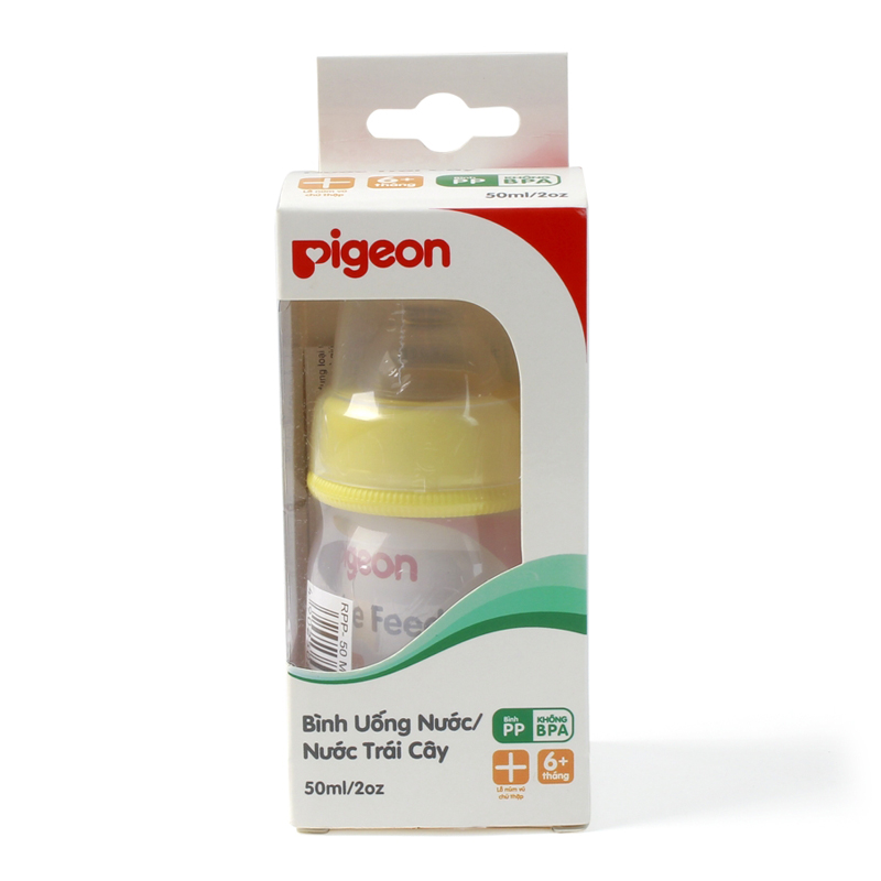 Bình nước Pigeon 50ml có nắp đậy riêng đảm bảo an toàn vệ sinh, thuận tiện để mẹ cất giữ khi không sử dụng đến. Vòng cổ nắp có những rãnh nhỏ chống trơn trượt để mẹ chuẩn bị được đồ ăn nhanh nhất cho bé.