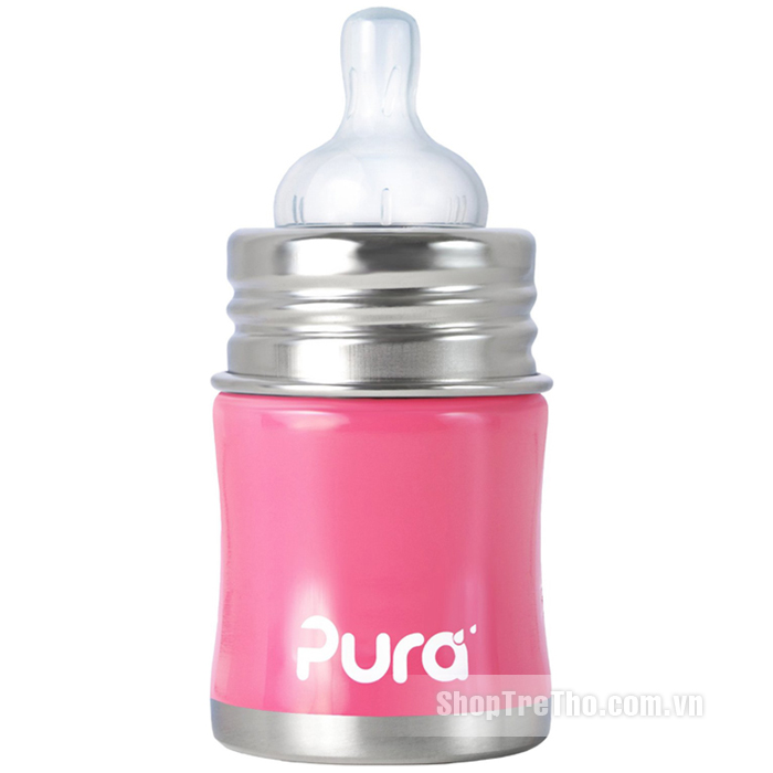 Bình sữa cao cấp cho bé Inox Pura màu hồng đáng yêu