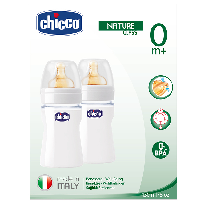 Bình sữa Chicco đôi 150ml thuỷ tinh 114362