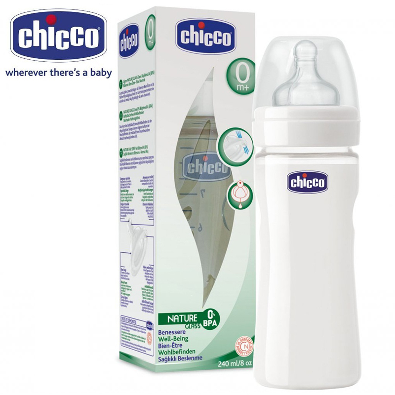 Bình sữa Chicco thủy tinh tự nhiên Chicco 240ml là 1 gợi ý hay cho các mẹ khi chuẩn bị đồ cho bé yêu. Bình giữ nhiệt tốt hơn, đảm bảo nhiệt độ sữa ổn định trong suốt quá trình bé ăn sữa. Chất liệu thủy tinh cũng dễ vệ sinh trong nhiều điều kiện khác nhau. Núm ty bằng silicone với van thông khí giúp loại bỏ các triệu chứng đau bụng, đầy hơi, ợ chua sau khi cho bé bú đồng thời giúp duy trì các chất dinh dưỡng cần thiết.