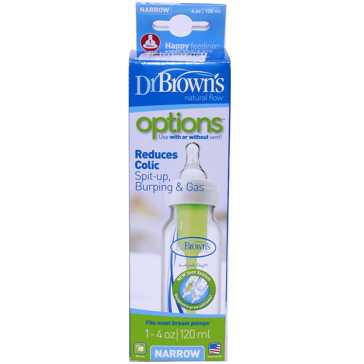 - Bình sữa Dr Brown's 120ml cổ hẹp là dòng sản phẩm chuyển đổi đầu tiên trên thị trường có 2 sự lựa chọn "có thể dùng hoặc không sử dụng hệ thống van khí". Đây là sản phẩm đang được ưa chuộng và đem lại nhiều lợi ích sức khỏe trong nhiều năm qua.