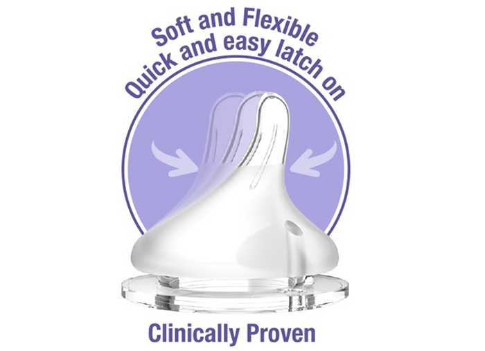 - Mô phỏng bầu ti mẹ: Thiết kế thông minh với bầu ti mô phỏng ti mẹ, hình dáng tự nhiên, chân núm ti rộng, núm ti 100% silicone y tế an toàn, mềm mại như da mẹ cho bé cảm giác thoải mái khi ăn.