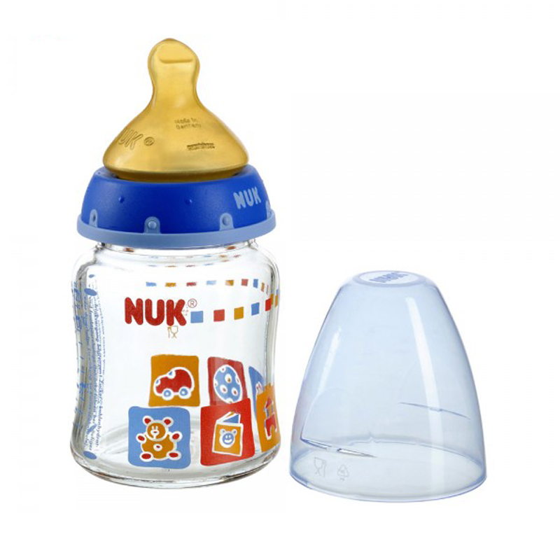 Bình sữa thủy tinh Nuk cổ rộng 120ml được sản xuất từ chất liệu thủy tinh cao cấp, trong suốt, thiết kế với miệng rộng thuận tiện cho mẹ pha sữa và vệ sinh bình. Núm vú bằng cao su siêu mềm và công nghệ van chống đầy hơi, tránh các hiện tượng đau bụng, đầy hơi, một trong những nguyên nhân chính khiến bé quấy khóc.